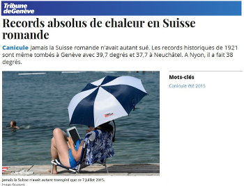 En juillet 2015, la température moyenne dans certaines régions de Suisse a été de 5°C plus élevé que la moyenne.